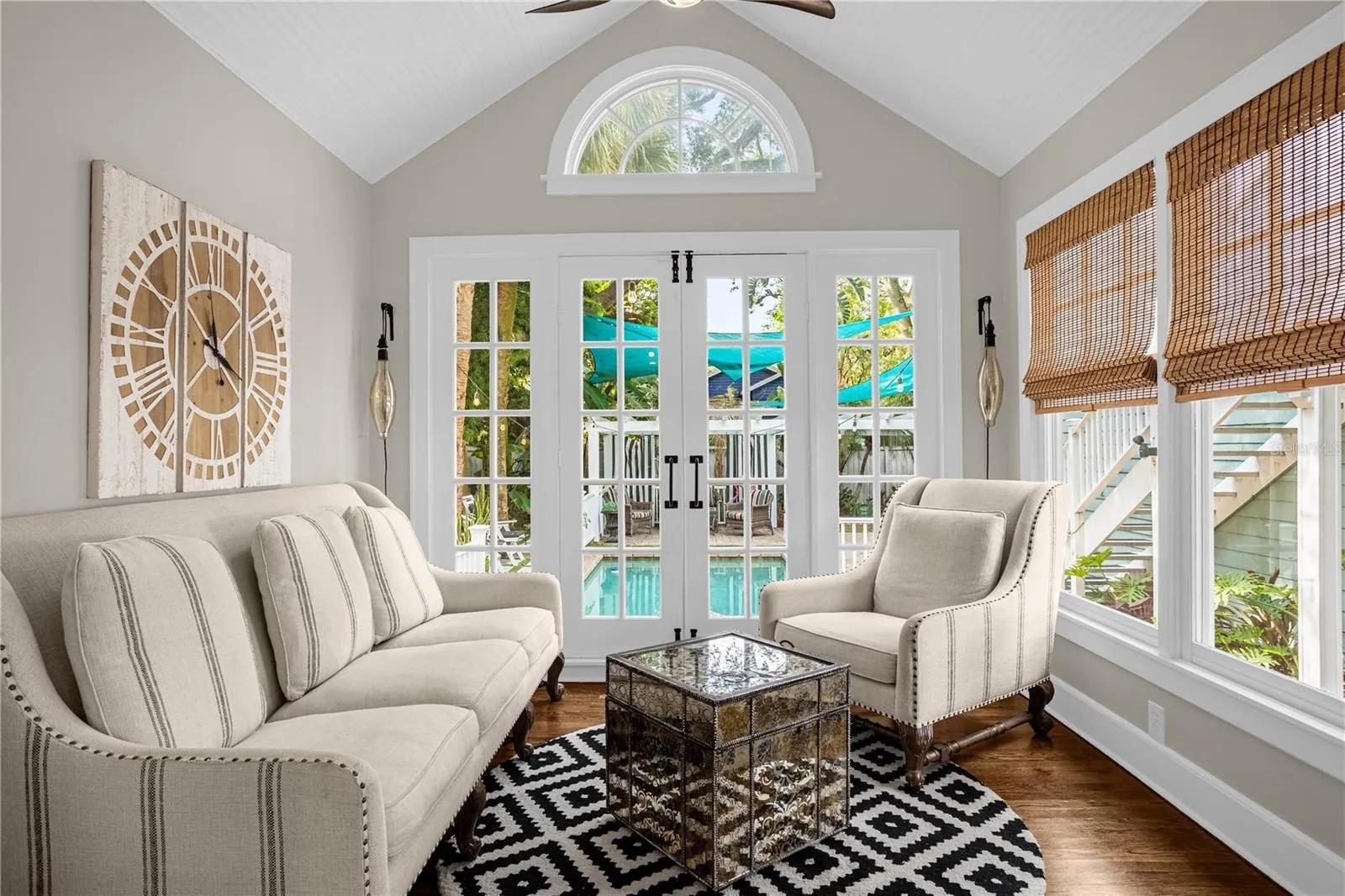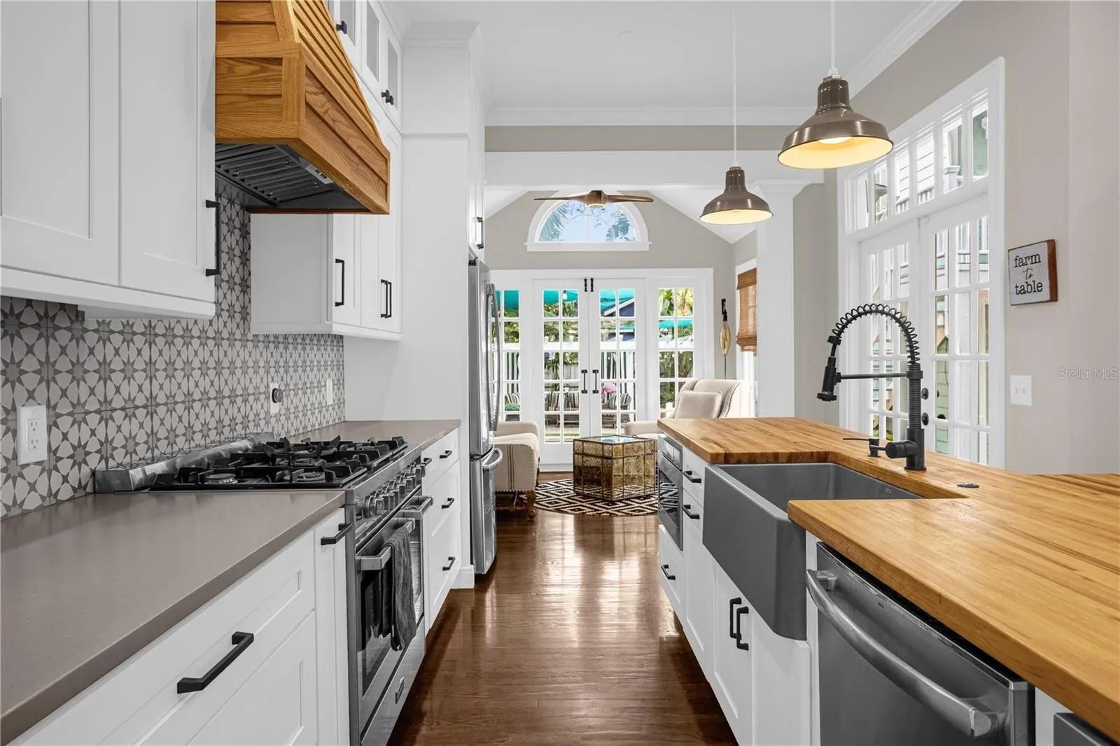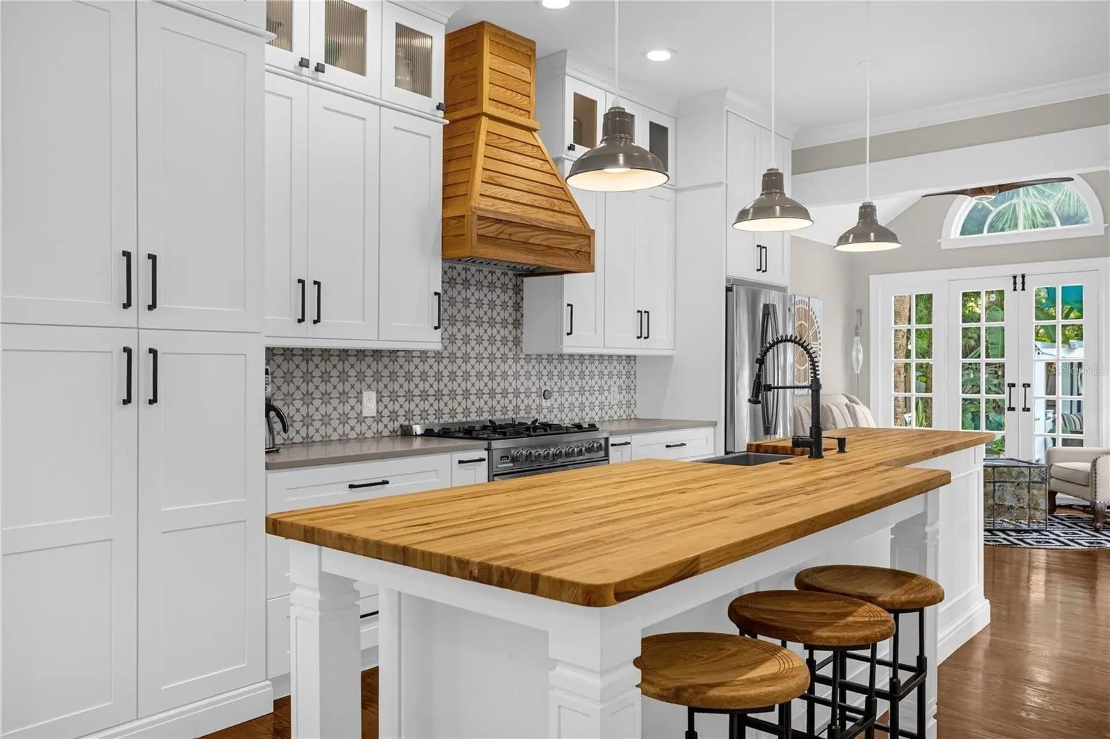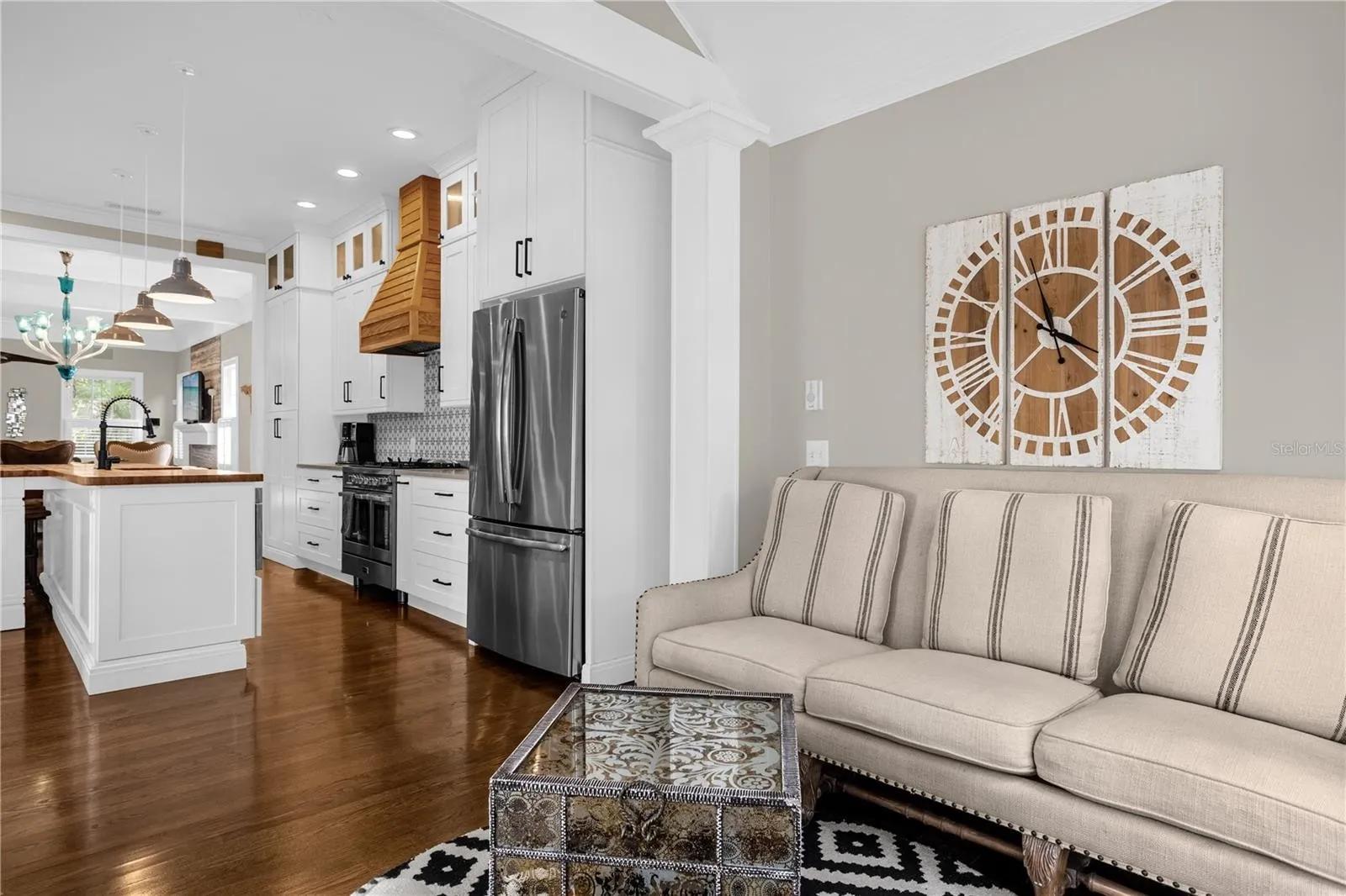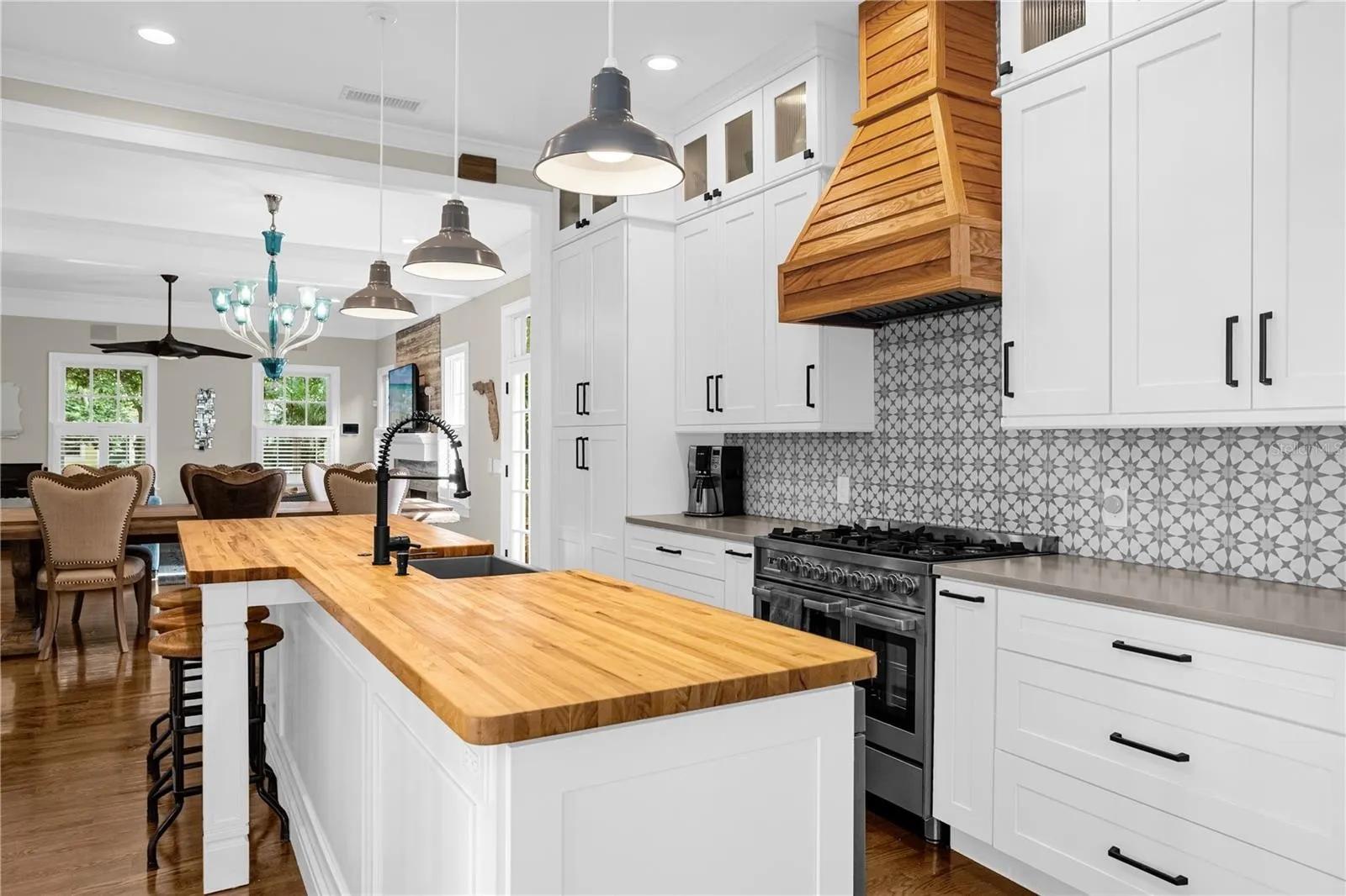 Listing contains both the main house and detached casita. The casita contains two units with a kitchen and a kitchenette. The main house also contains a kitchen. Bed situation is as follows : 1 kings, 3 queens and a couch bed that folds out into a queen. No pets or smoking inside the home(smoking is allowed outside)