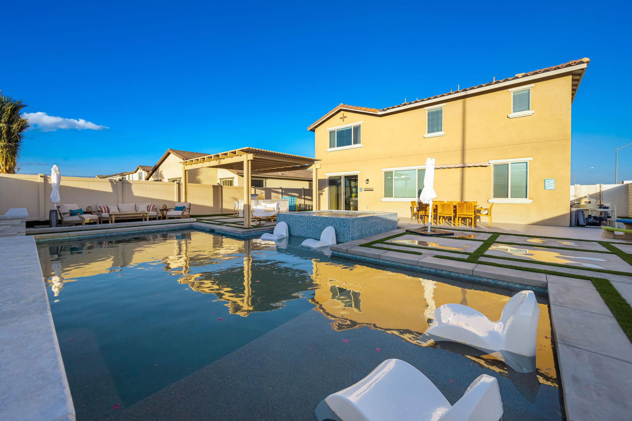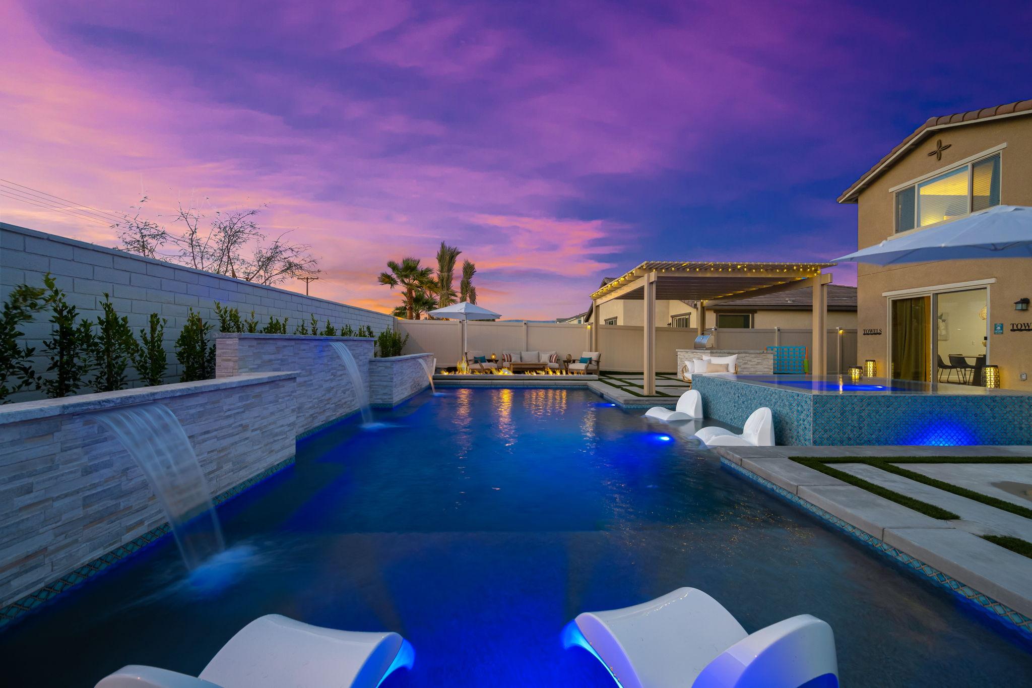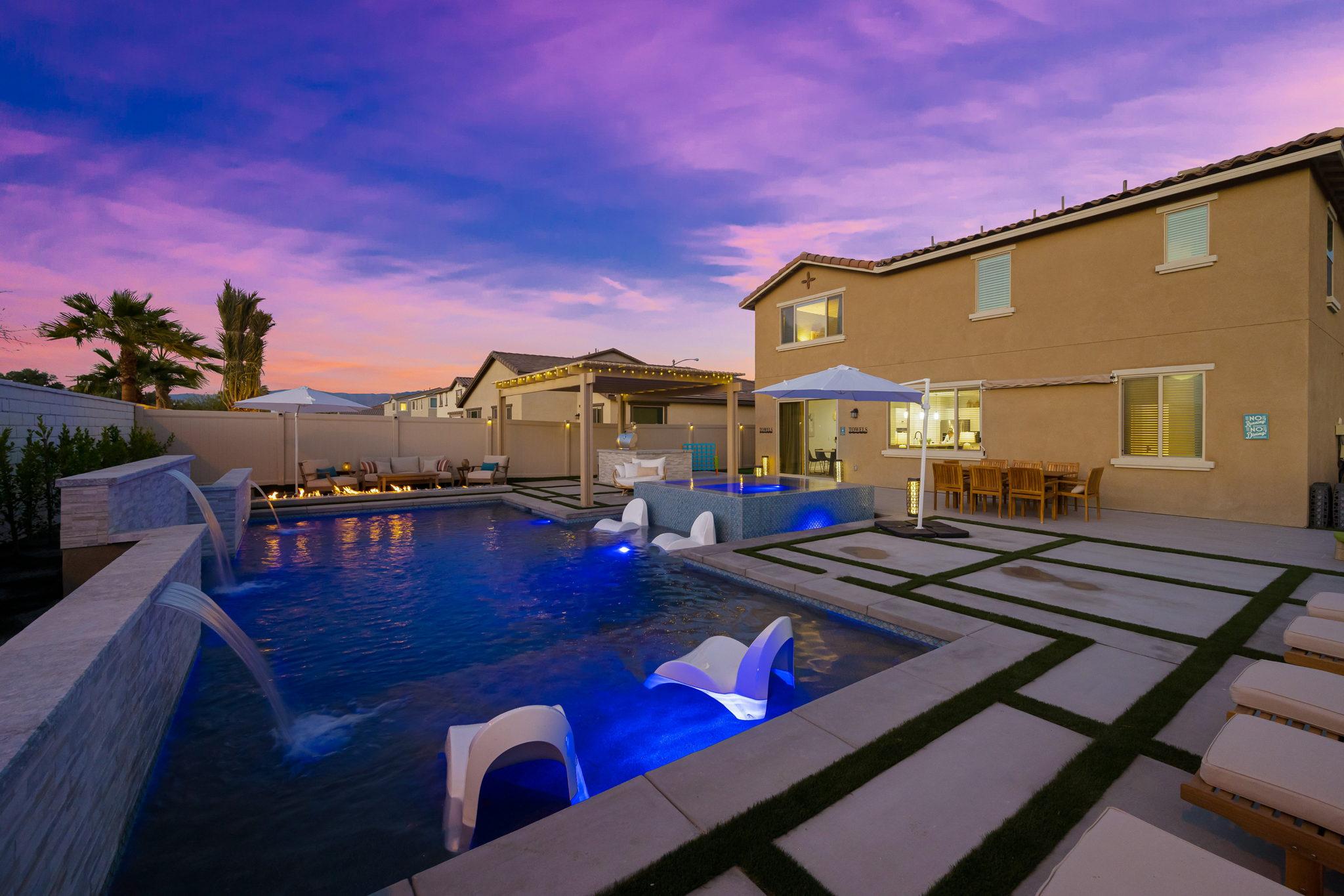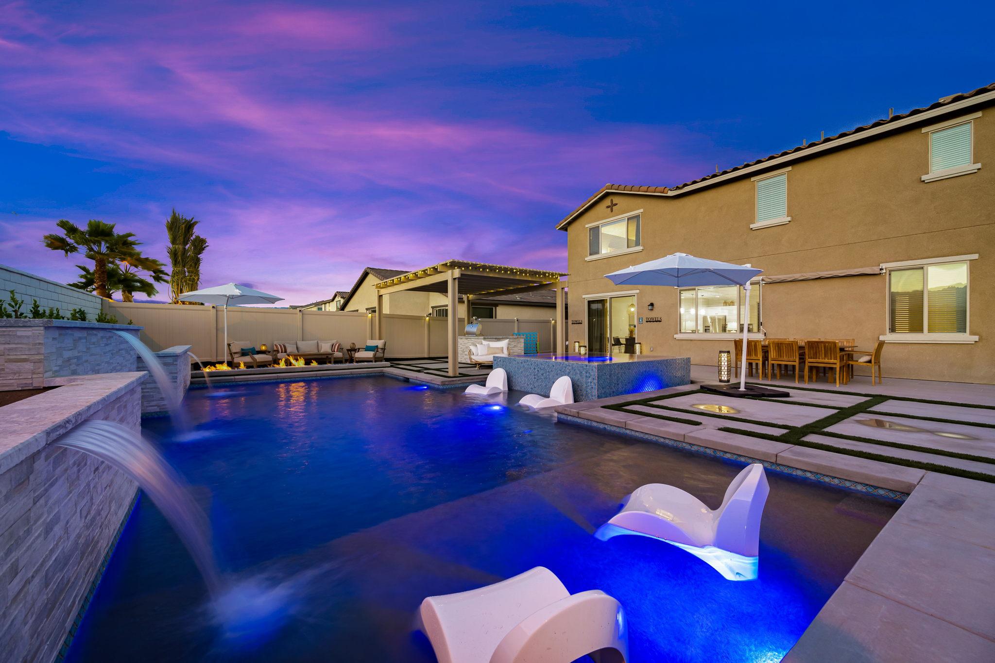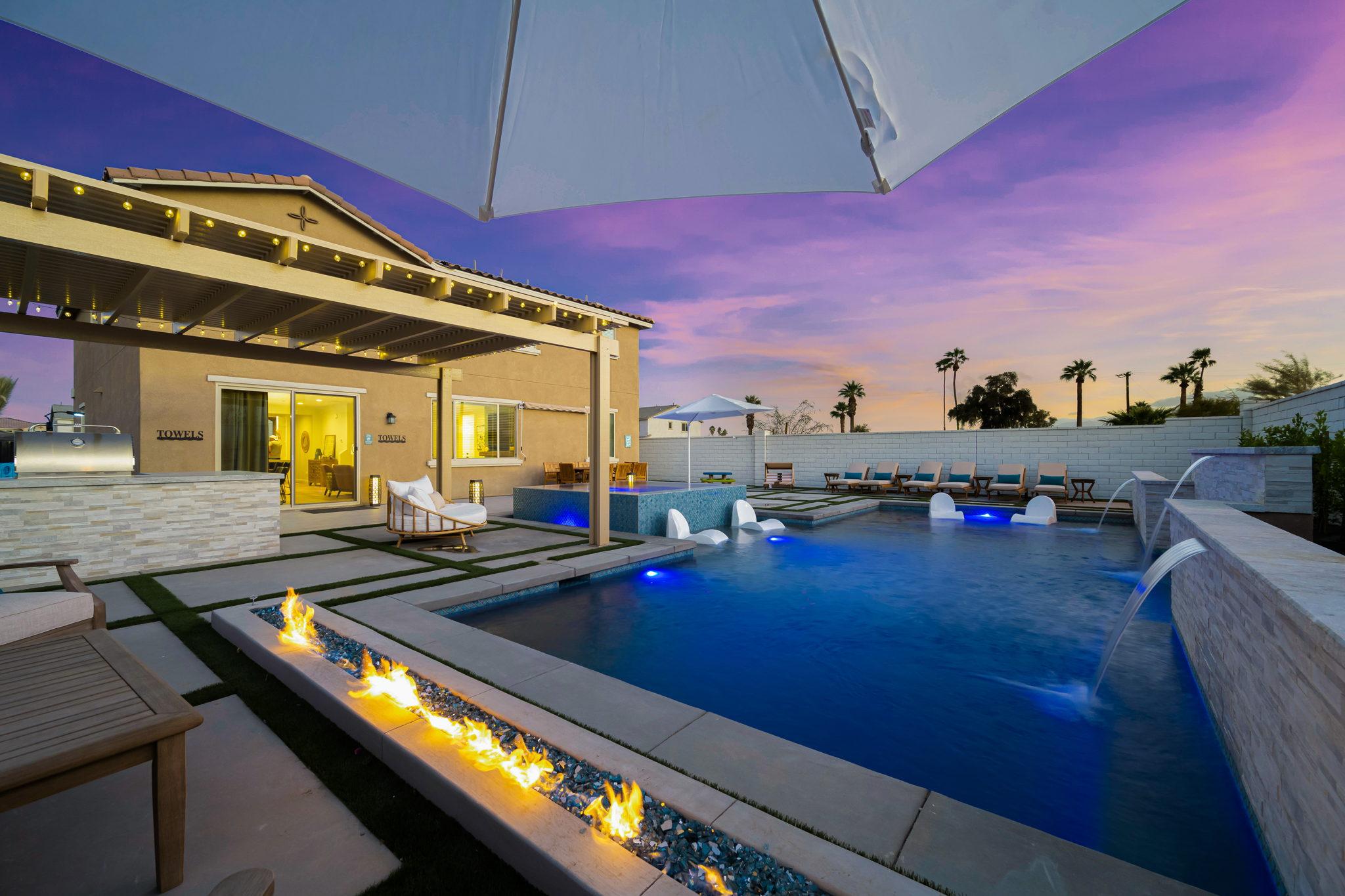 Indulge in luxury at this professionally designed vacation rental in Coachella. Presented by Luxliving Vacation Rentals, every detail of this stunning property has been meticulously planned for a 5-star private resort experience. Enjoy the extraordinary pool, spa, game room, fully equipped kitchen, and ultra-comfortable beds with smart TVs. Your tranquil oasis awaits in this best-of-the-best getaway!