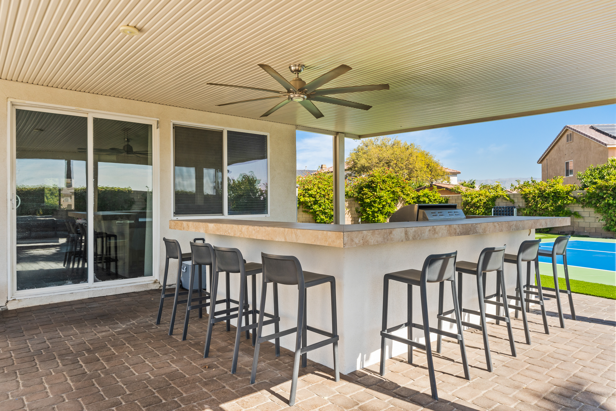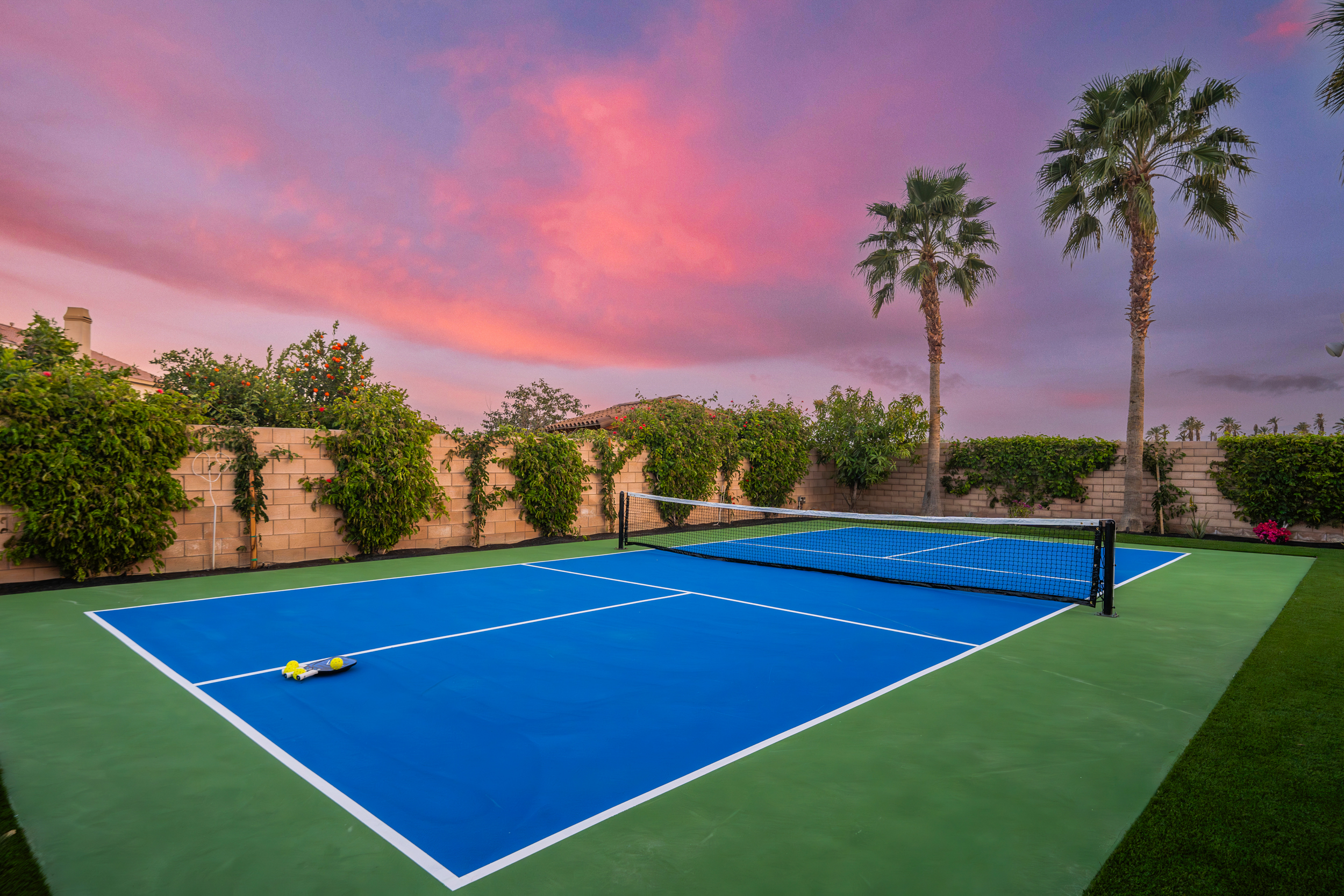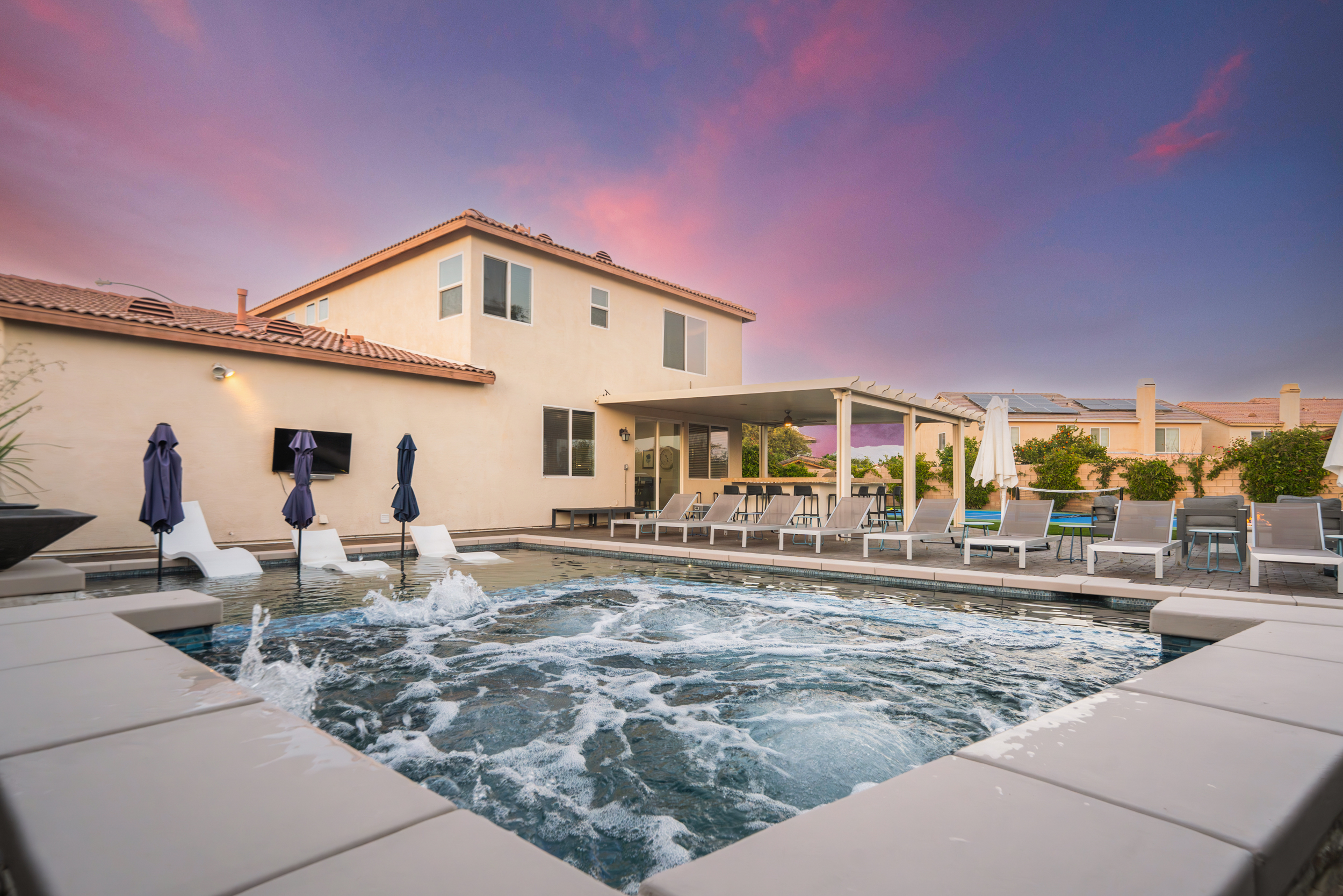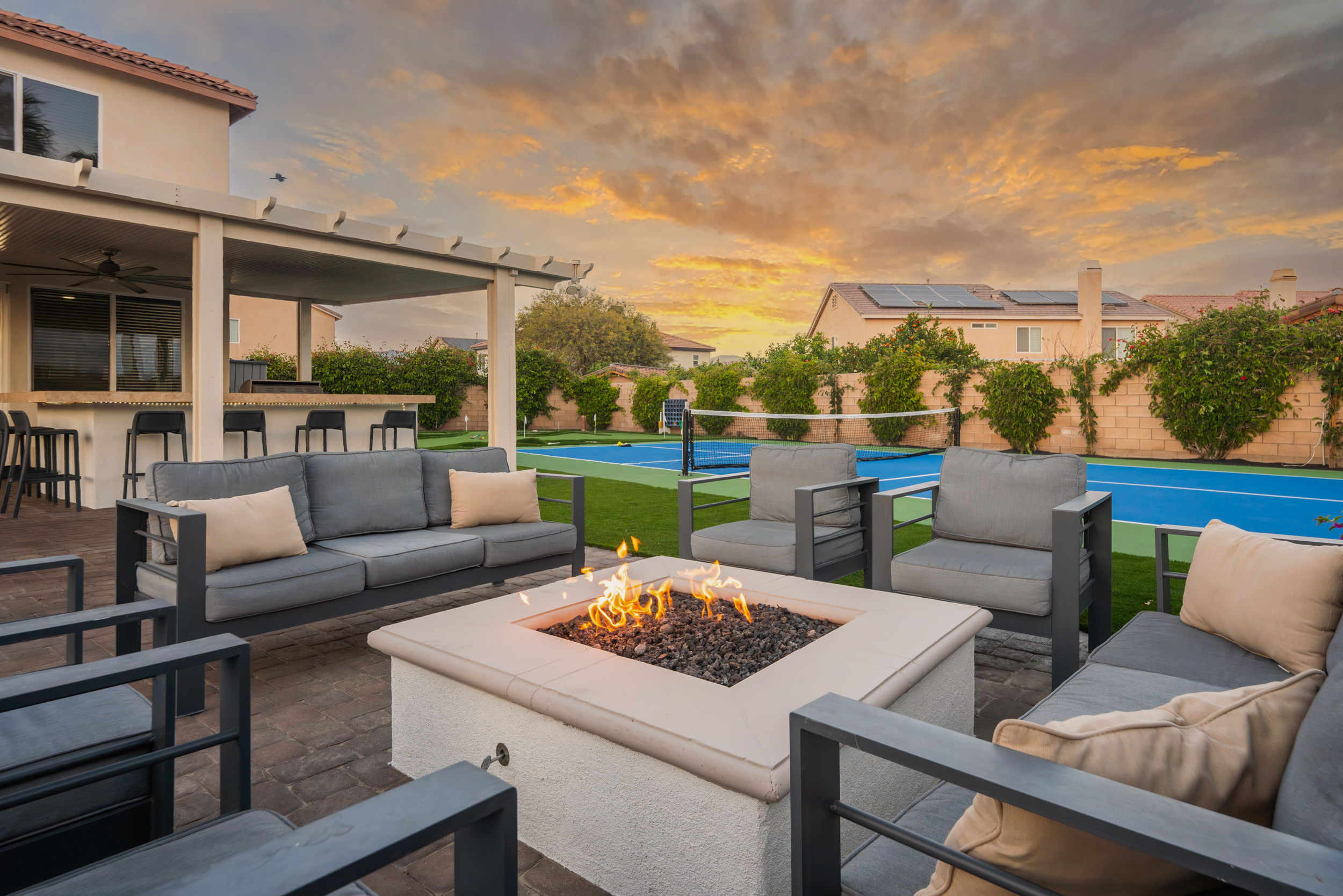 Fully revamped Coachella Dream property just added a full pickleball court!! Presented by Luxliving Vacation Rentals this 6-bedroom oasis offering resort-style living, complete with a remodeled interior. Lounge by the oversized pool, enjoy outdoor movies, or partake in activities with the brand new oversized putting green, boccie ball, and horse shoe. With festivals, golf, and polo nearby, entertainment abounds. Immerse in luxury with the Sonos sound system. Your ultimate desert escape awaits!