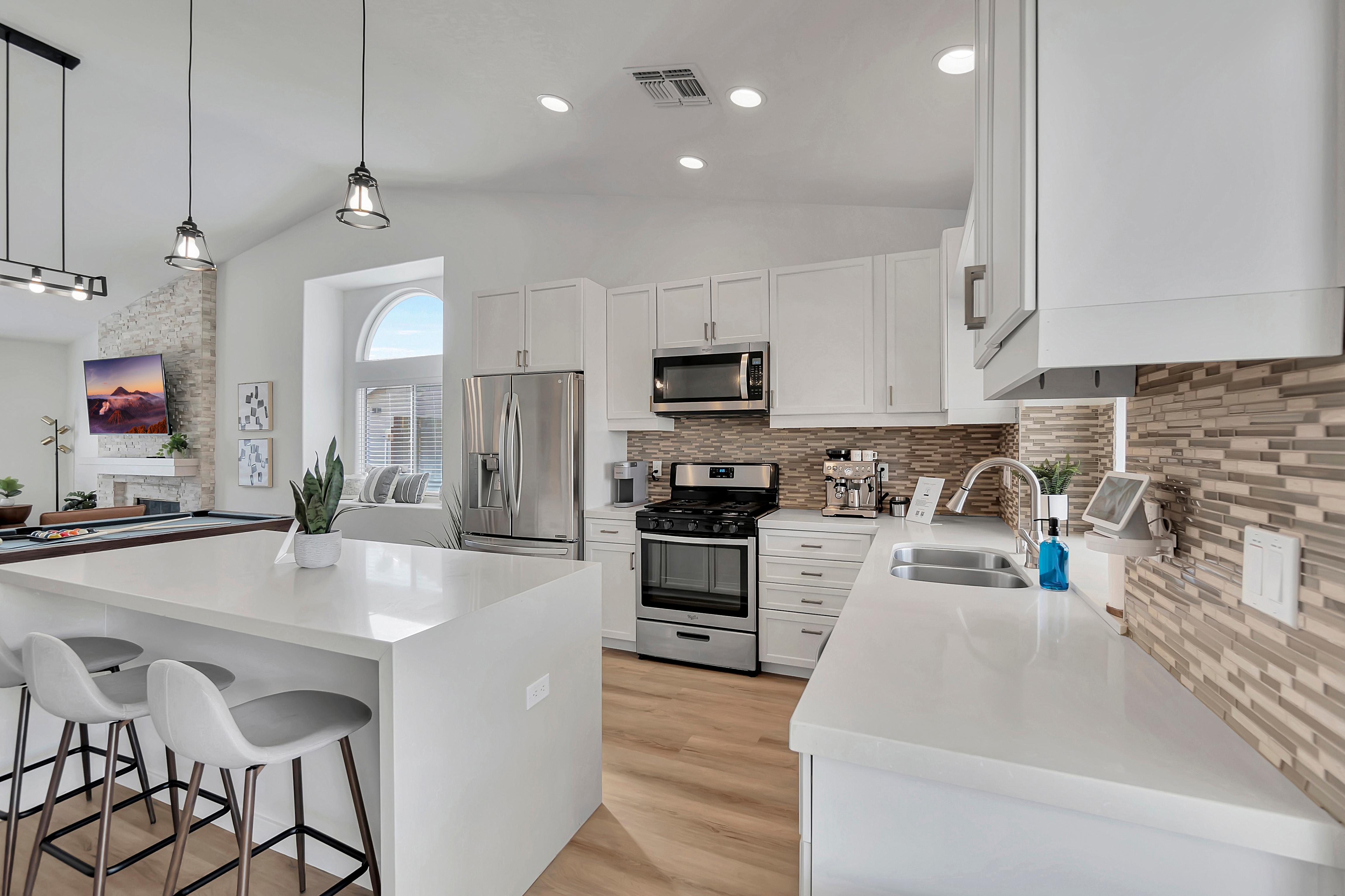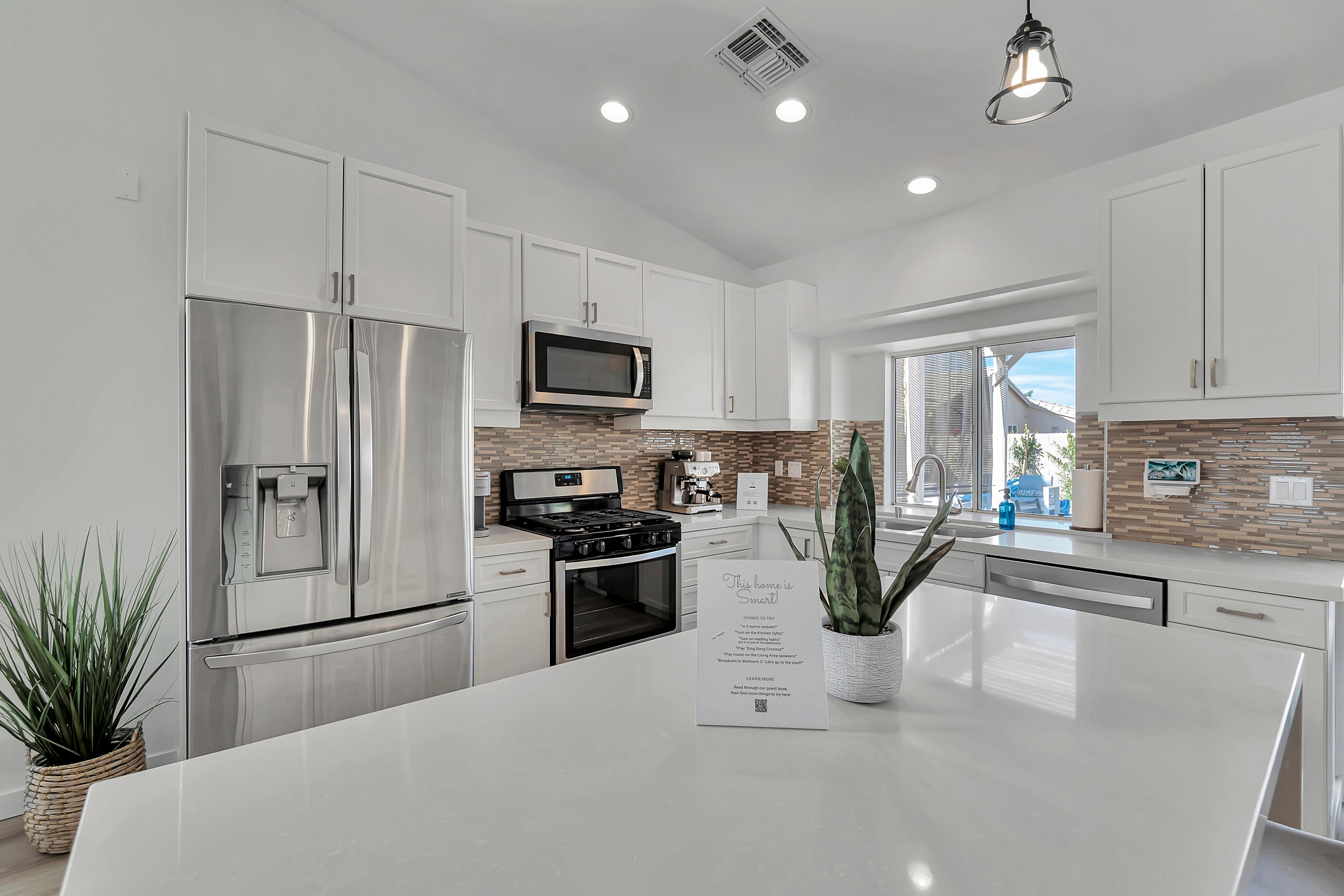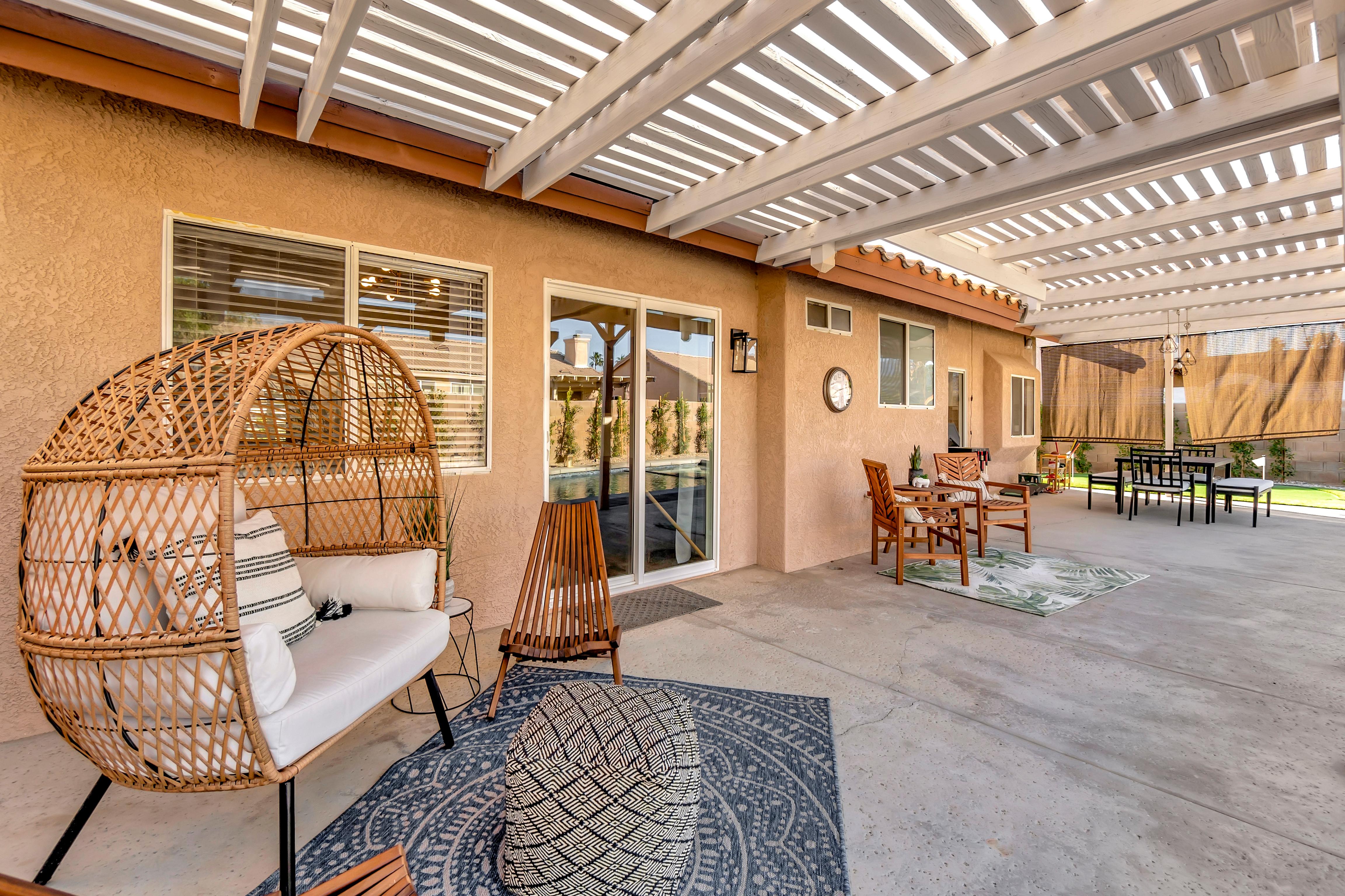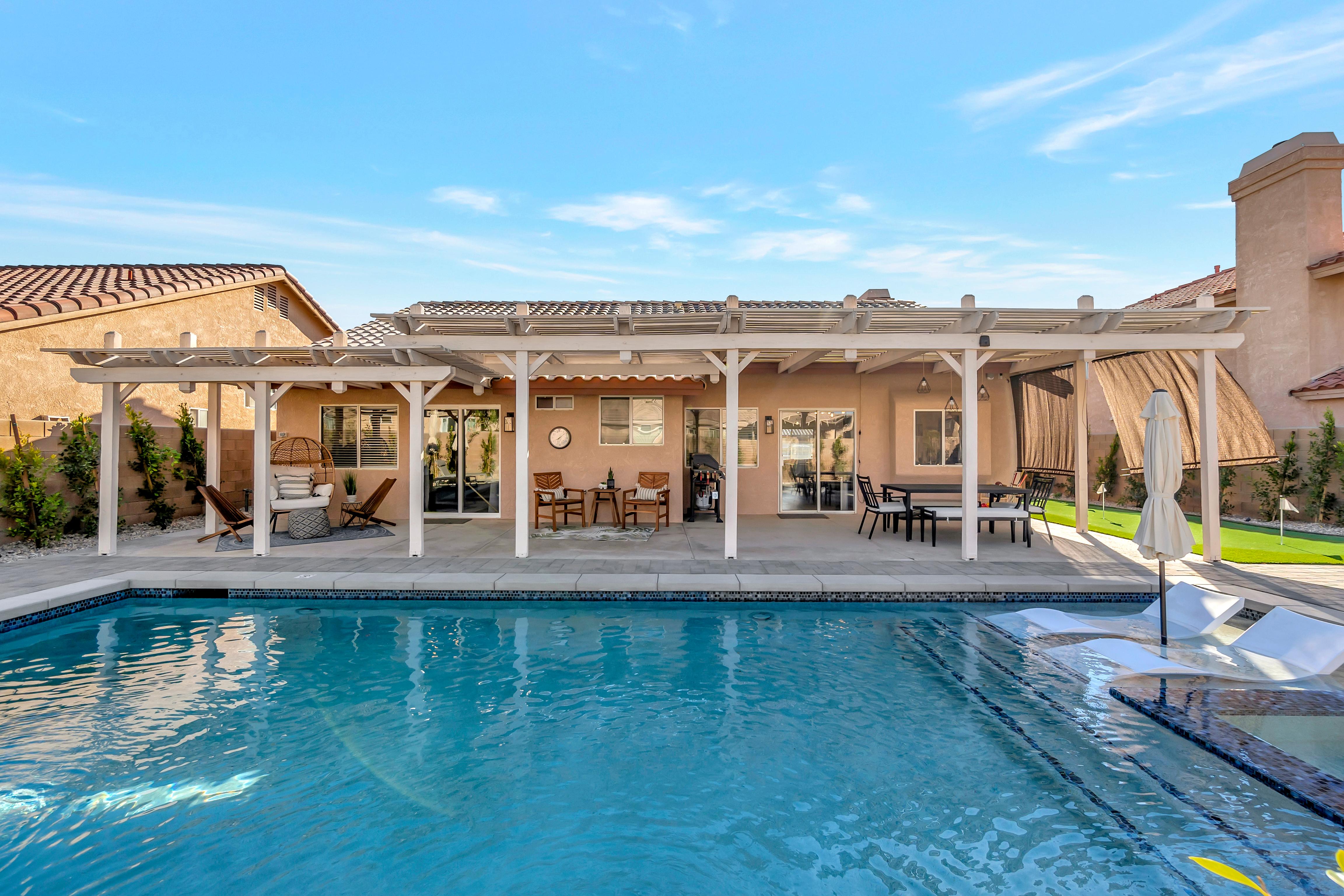 LuxLiving Vacation Rentals presents "The Desert Escape" - A Newly remodeled desert masterpiece! Come relax at this beautifully designed home. Spend the afternoons floating in the pool, or soaking up the sun in one of the many outdoor lounge areas. Enjoy the warm evenings grilling outdoors or cooking in the fully stocked kitchen. This home was designed and decorated with one thing in mind...ultimate relaxation and no detail was overlooked.