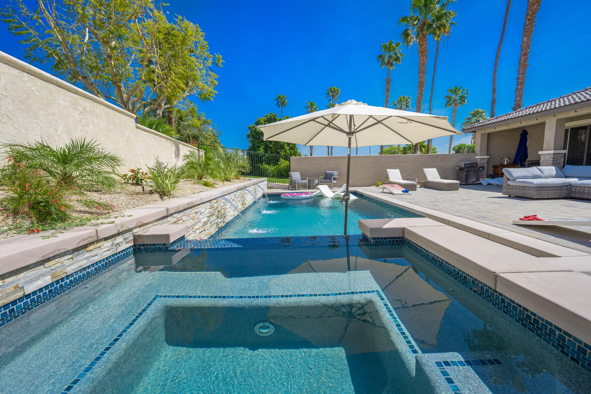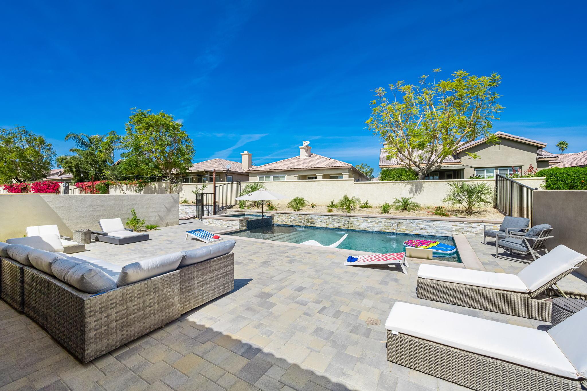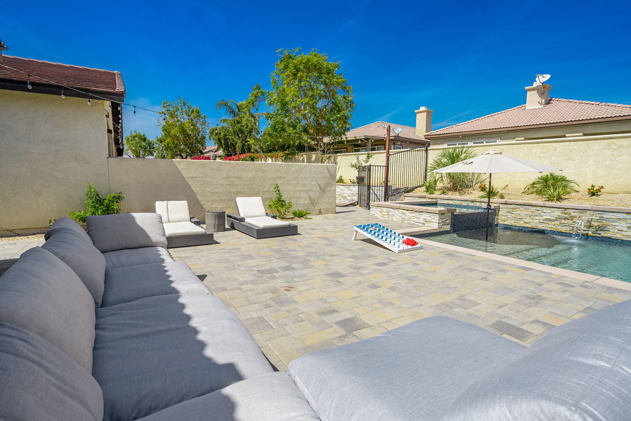 The backyard offers all you need to enjoy a full day in the sun. Enjoy a drink around the pool with spillover