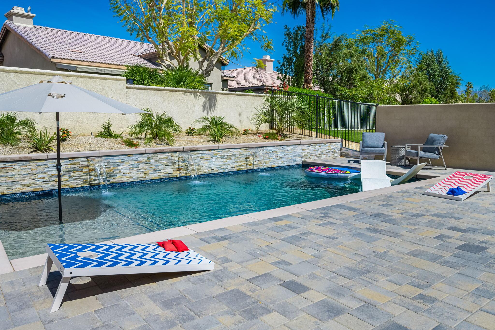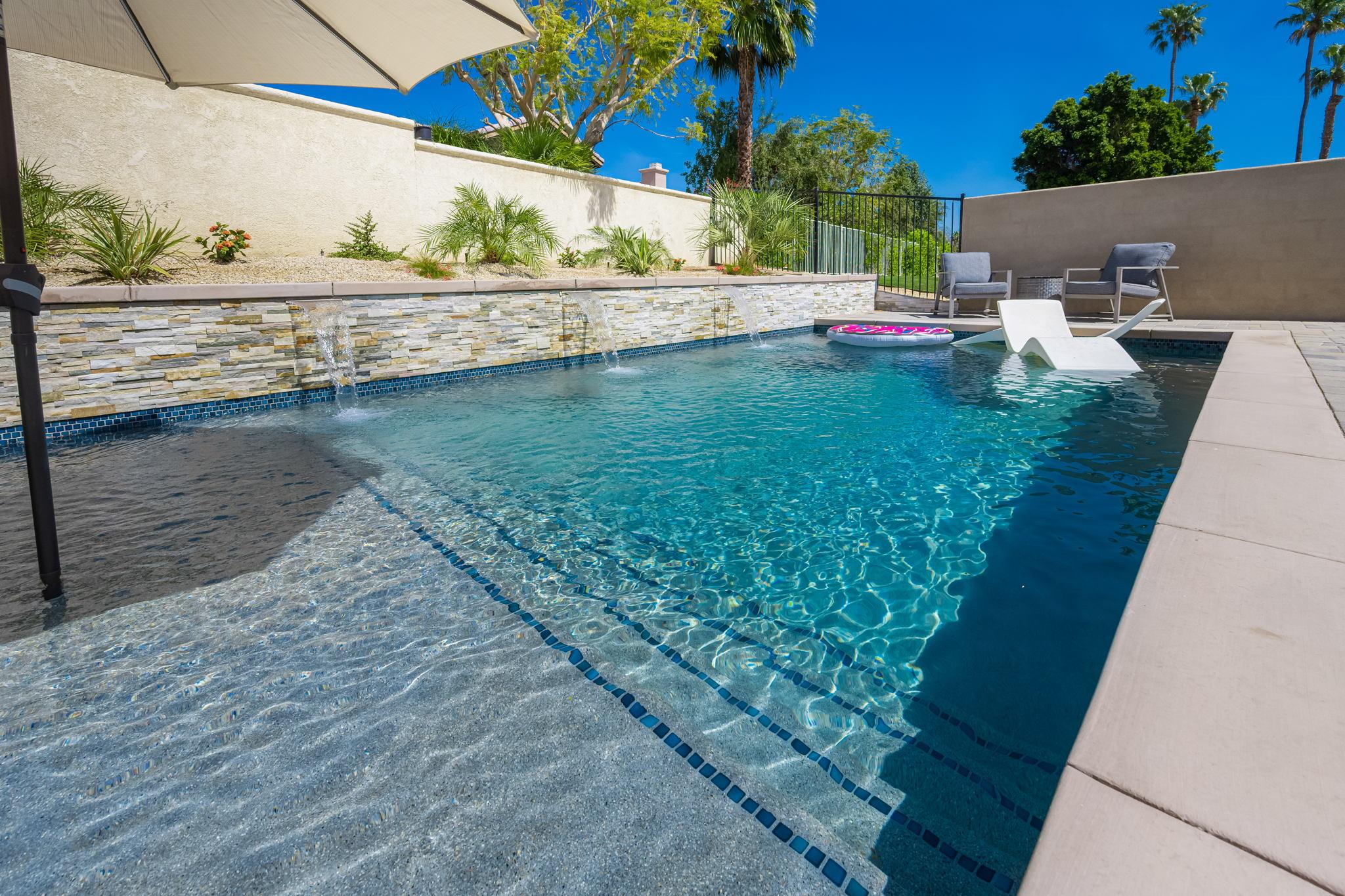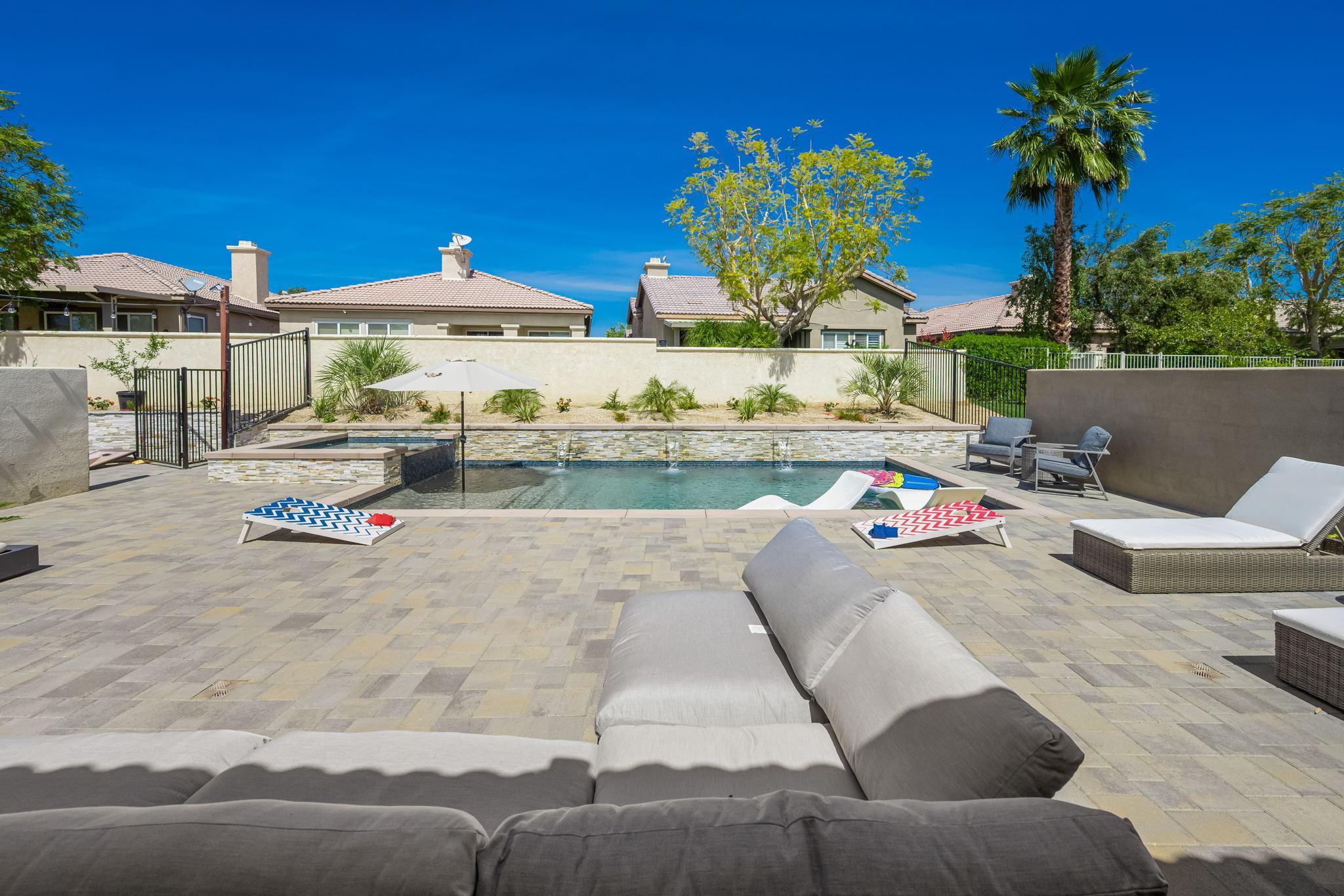 The backyard offers all you need to enjoy a full day in the sun. Enjoy a drink around the pool with spillover