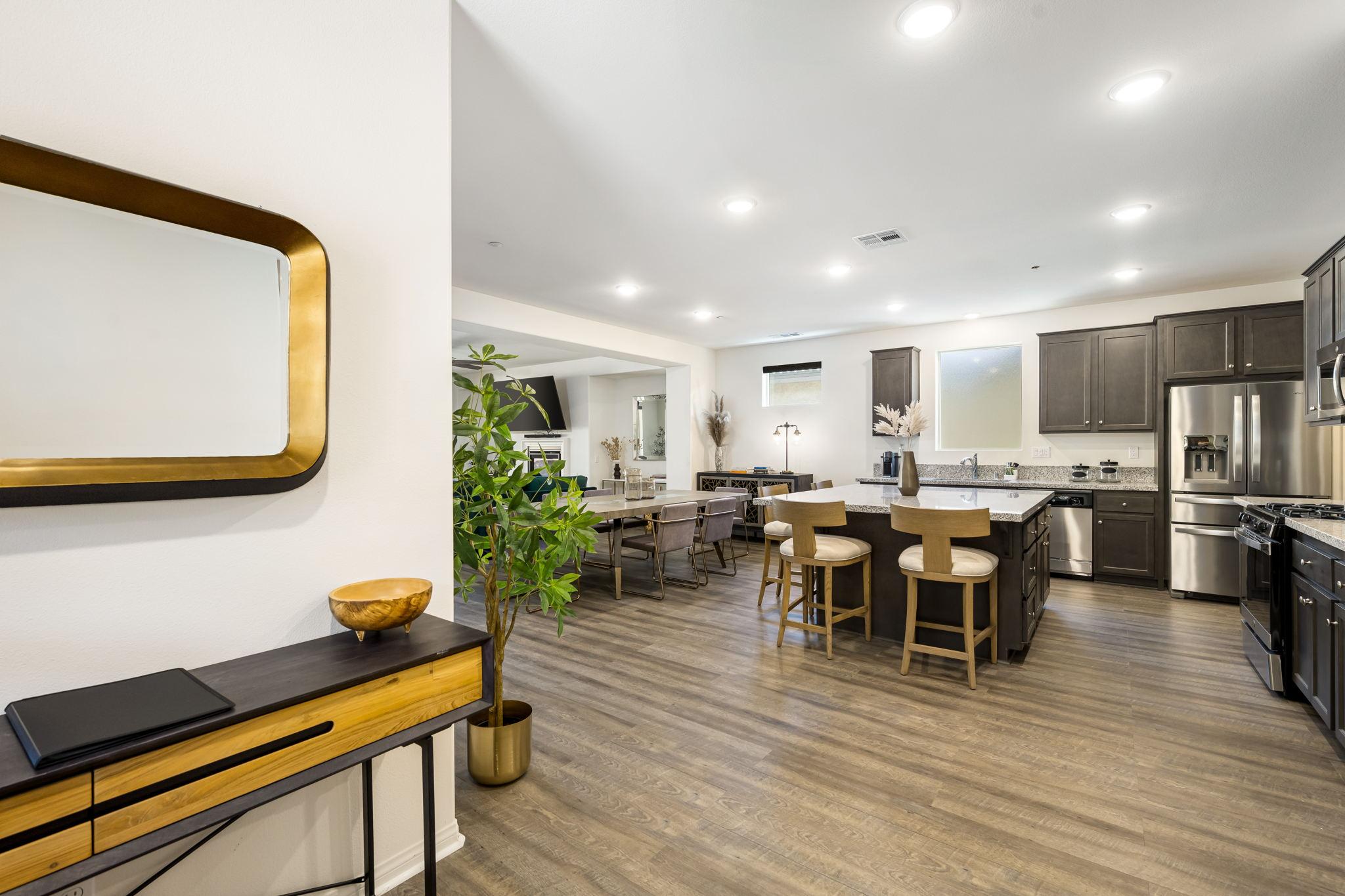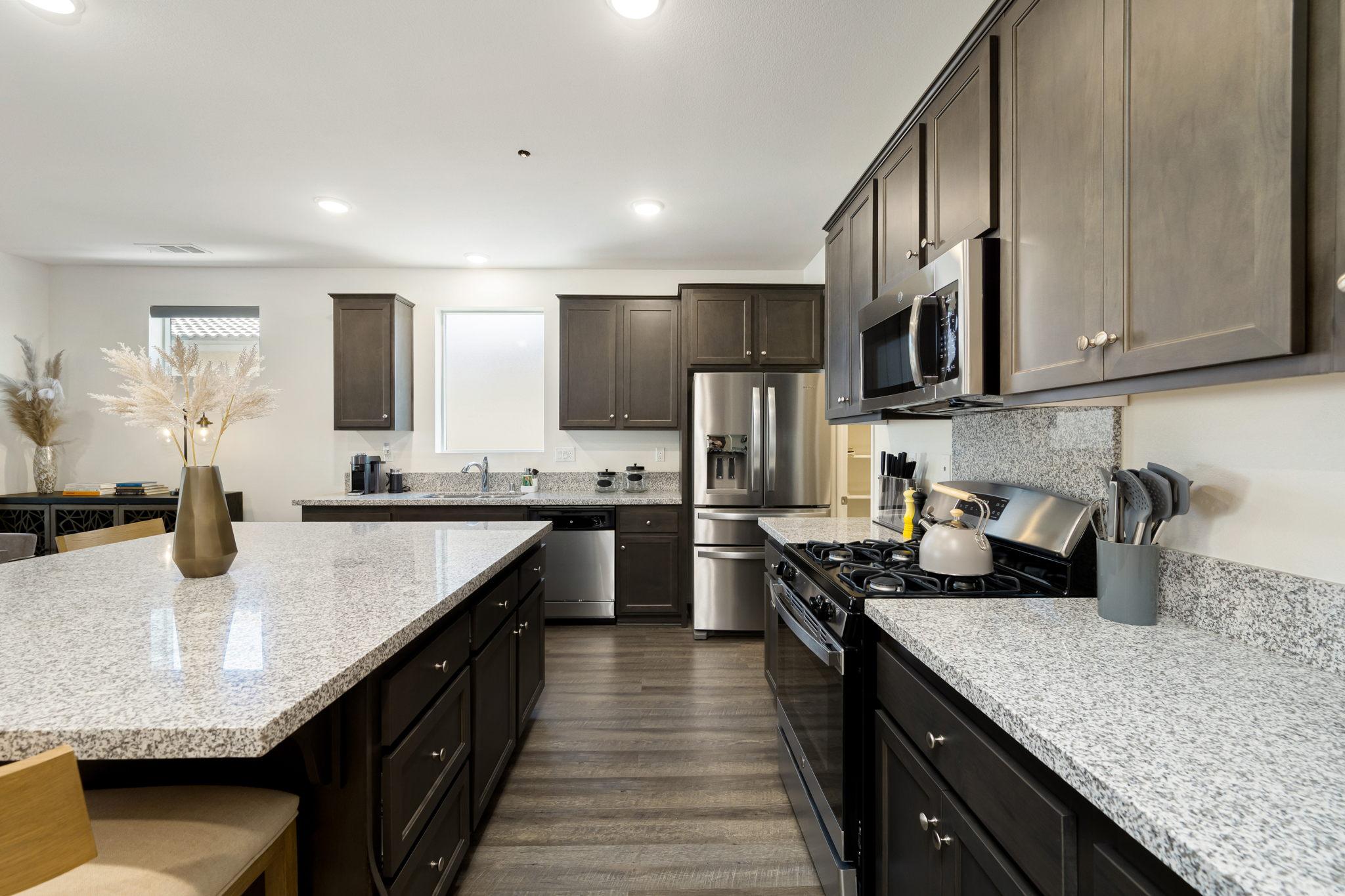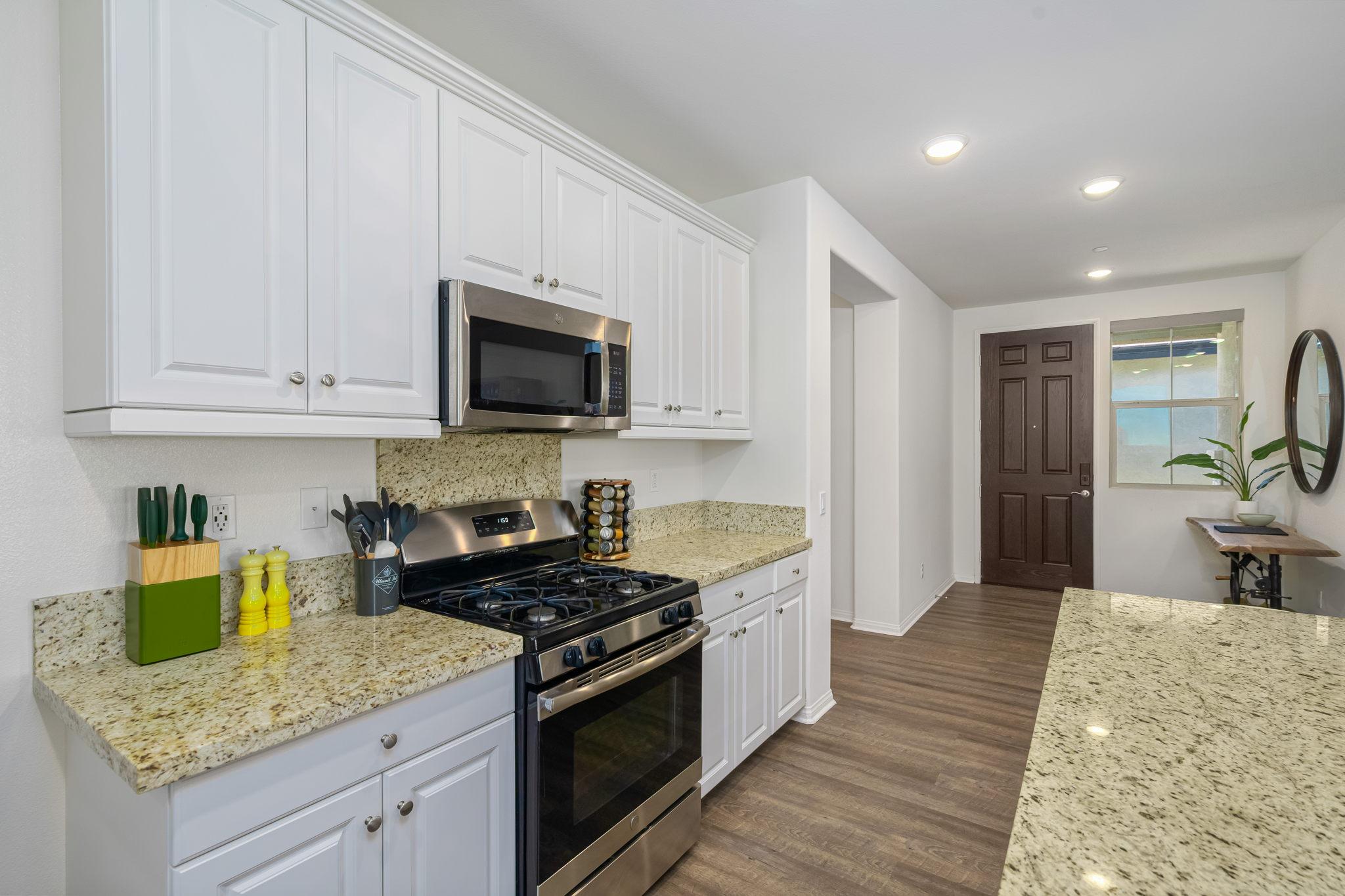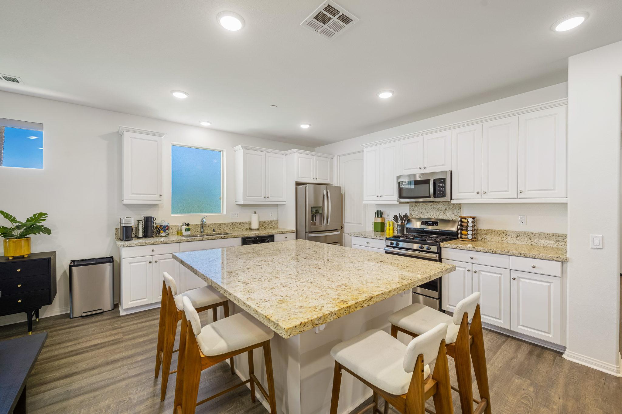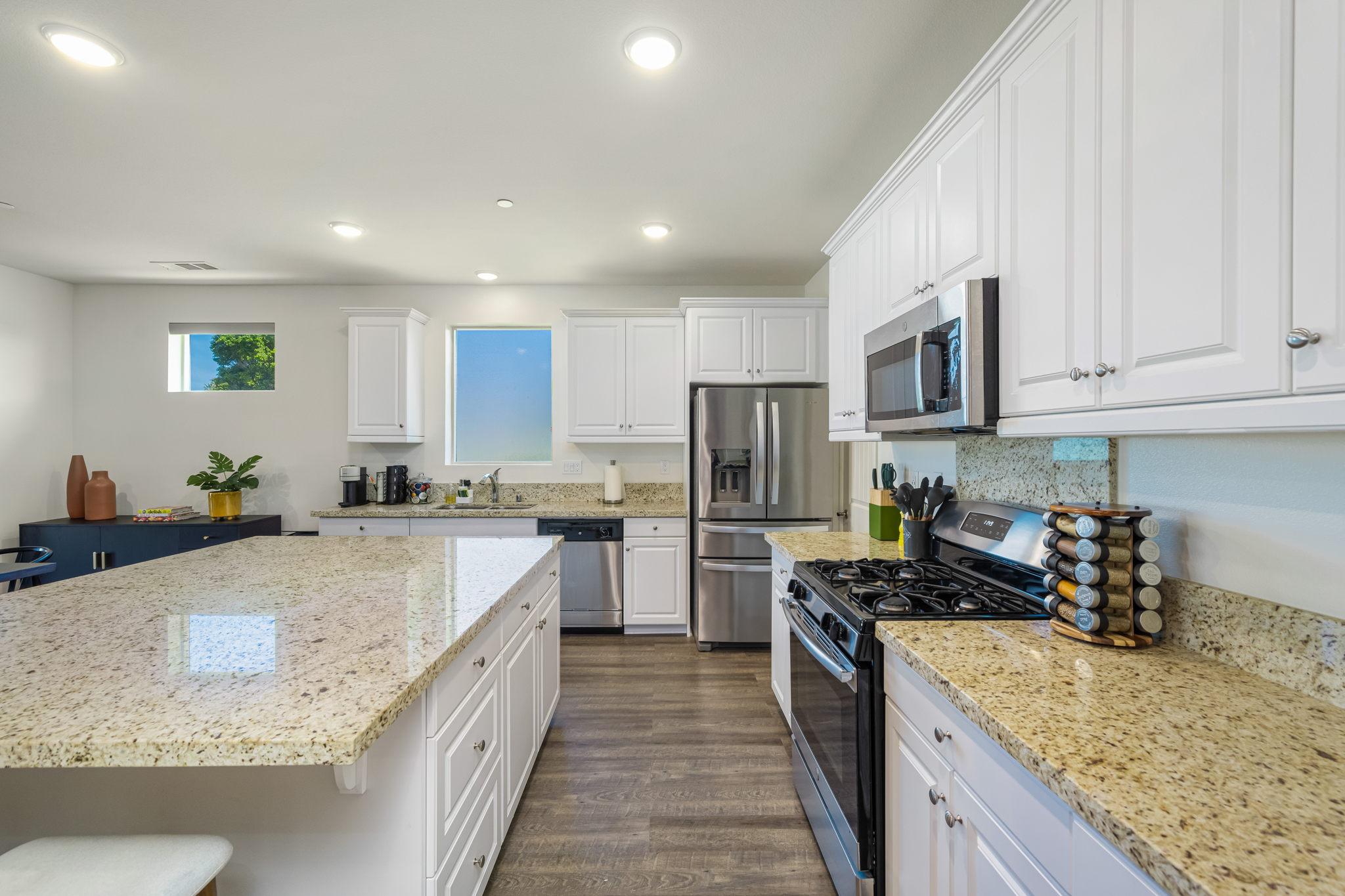 and amenities. The huge, fully-appointed kitchen anchors an airy living and dining area. The large island