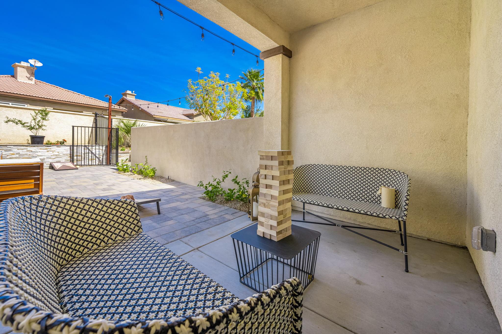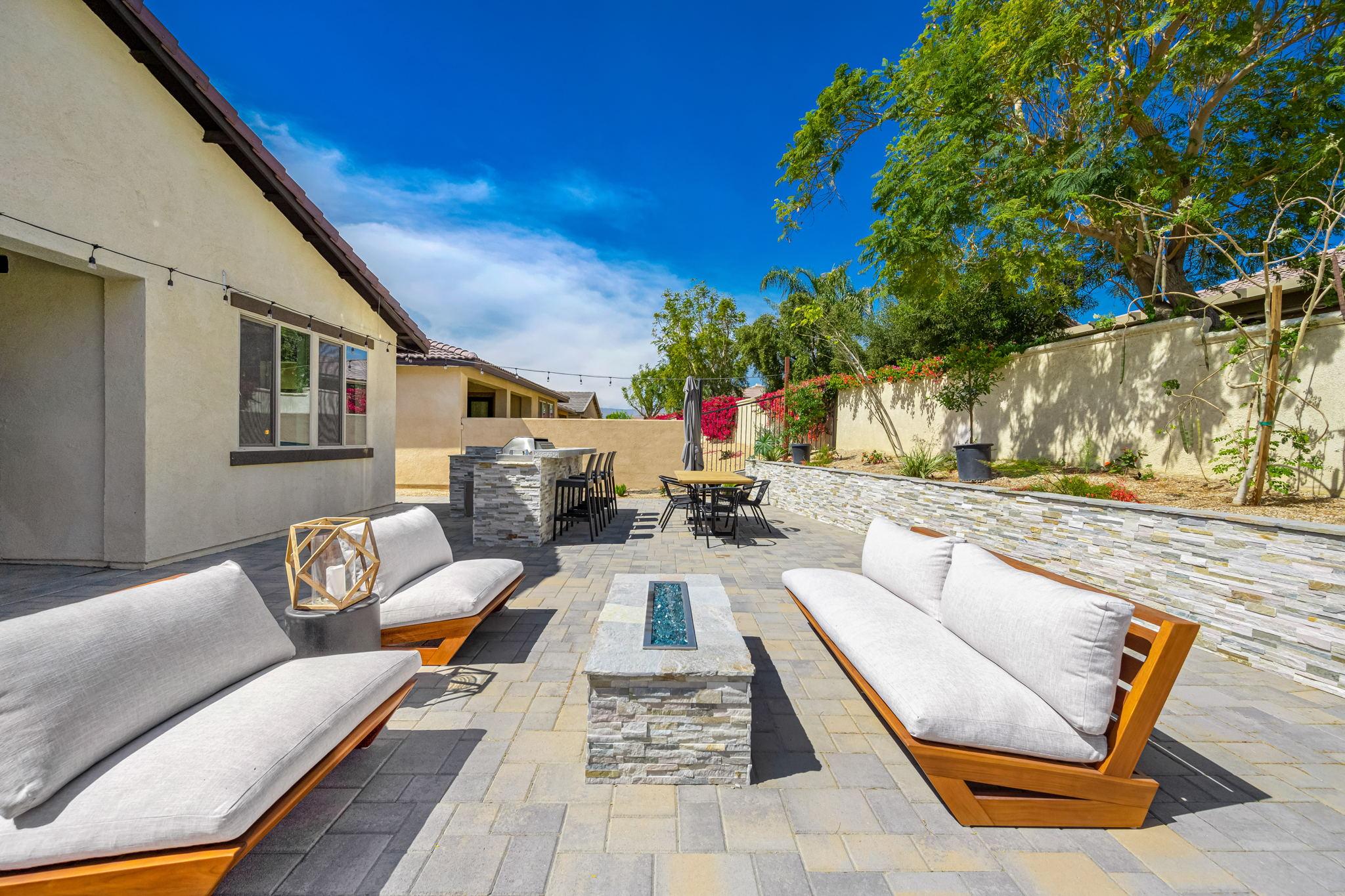 comfortable seating around a gas fire pit. Located 1.5 miles to Coachella, Stagecoach, and the Polo Fields.