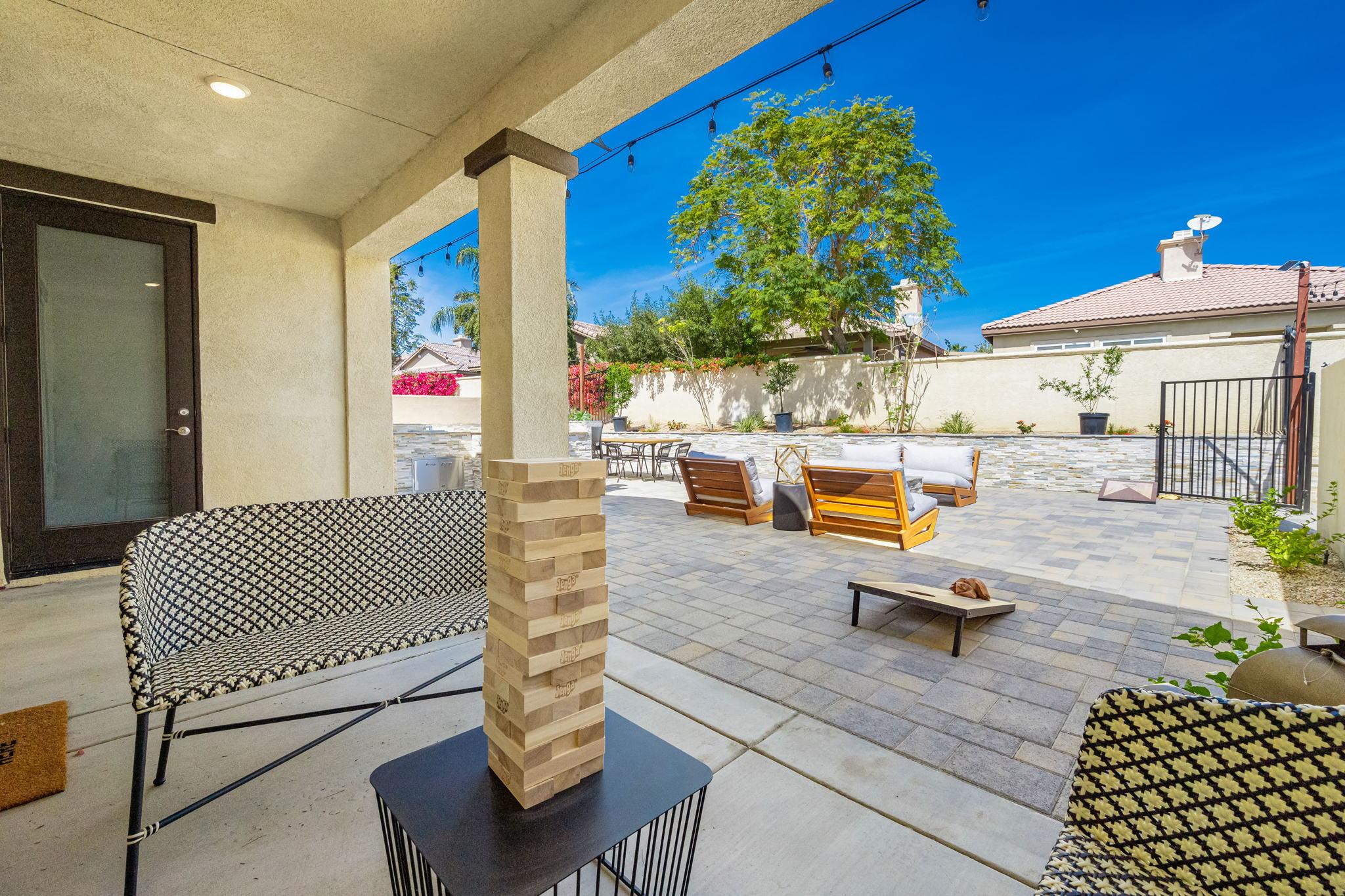 Enjoy the outdoor games (ring toss, Jenga, and cornhole) available for your entertainment.